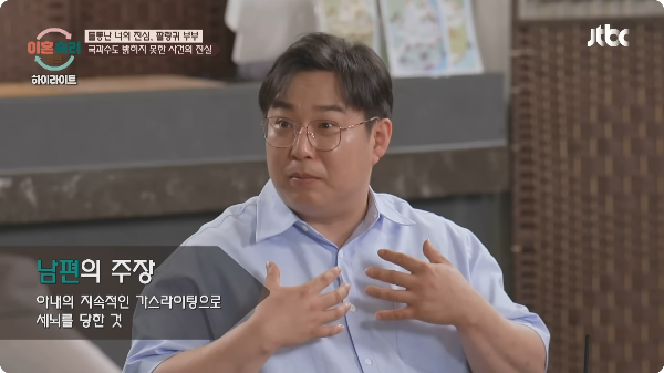 문지훈은 “아내의 반복된 가스라이팅과 세뇌로 인해 기억이 왜곡되었을 수도 있다”며 억울함을 호소했지만, 시청자들의 반응은 차가웠습니다.